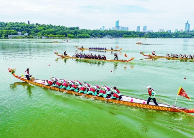 昨日,南京市第十七届工人运动会龙舟比赛在玄武湖阳光码头龙舟运动基地举行,共有15支代表队近400名运动员参加了200米、500米直道竞速比赛。