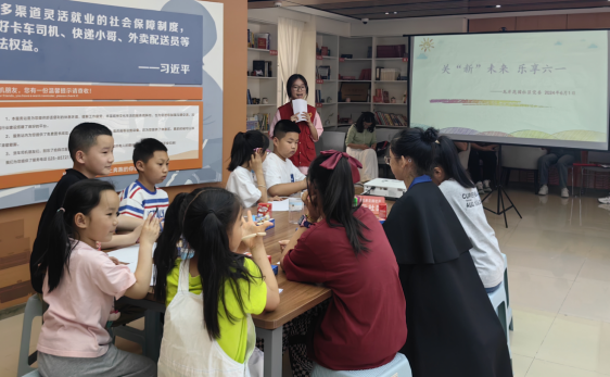 编网兜不仅是端午传统习俗中的一部分,更承载着美好的寓意,它象征着网罗幸福,收获幸福。孙庄村在保通路货车司机党群服务站邀请了编网兜老师现场教学,孙庄村村民、货车司机和小朋友们积极参与,在老师的带领下,彩色的毛线在大家手中灵活穿梭,一个个充满童趣的蛋兜雏形逐渐显现,大家相互交流编织心得,编织完后将鸭蛋放入网兜中,小朋友们还将自己编织的网兜送给了站点的货车司机叔叔们。温馨有趣的DIY手工编织不仅织出了浓浓的龙潭情,更稳稳“兜”住了龙潭人民的满满幸福。当儿童节与端午节相继到来之际,龙岸花园货车司机党群服务站的志愿者在站点给新业态从业者的孩子们讲述龙潭港的发展历程,当听到龙潭故事时,孩子们对父母工作、服务的这片土地有了更深的了解,那片龙潭情也悄然落在心中,慢慢发芽。