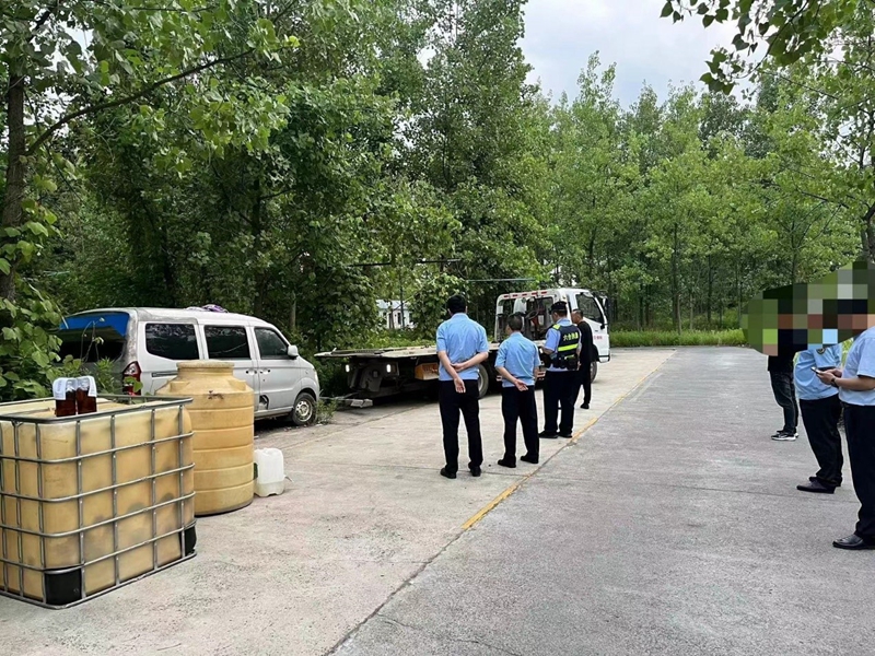 6月7日上午接群众举报,在瓜埠某废弃驾校内有一辆私人面包车违法改装成油罐车,在给工地车辆加油。接到消息后,六合区瓜埠派出所民警迅速出警,来到该处工地找到了这辆车,现场发现此车为白色面包车违法改装成的“黑油车”,民警检查后发现该车存在重大安全隐患,由于一直联系不上车主,最后叫了拖车将该改装车强行拖走,等待处理结果。