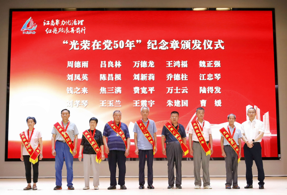 活动现场,各级领导共同为街道“优秀共产党员”“优秀党务工作者”荣誉称号获得者颁发荣誉证书,还为8位老党员代表颁发“光荣在党50年”纪念章。