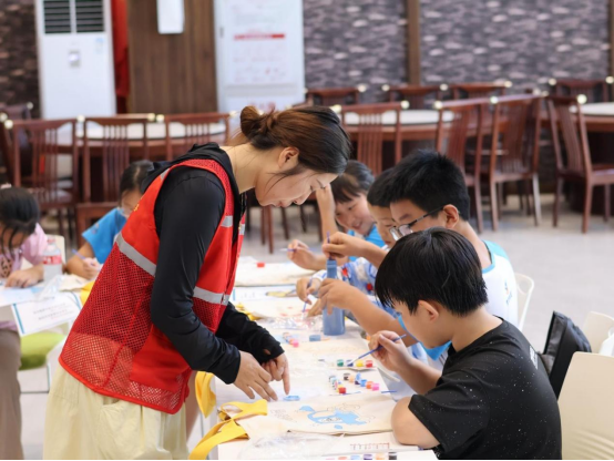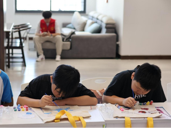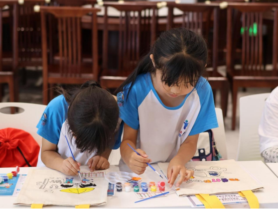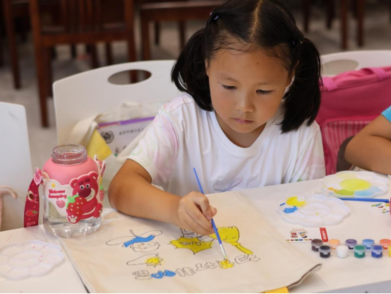 接着,志愿者带领同学们前往月半剧场一同DIY帆布包。同学们用画笔蘸上喜欢的颜色,在帆布袋上勾勒出一幅幅主题突出、色彩鲜明、构图饱满的画作,经过一个小时的精心创作,同学们制作出了一个个图案精致、色彩鲜艳、又具有“护苗”行动特色的手绘帆布包。