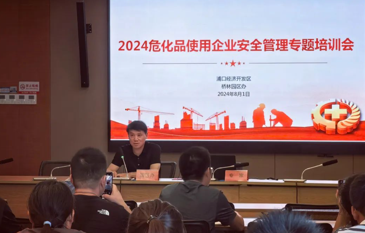 为提高危险化学品企业在特殊作业和异常工况等情形下的风险防范意识和管理能力水平,进一步强化危险化学品使用单位安全警示教育,切实落实安全生产主体责任。8月1日,浦口经济开发区召开危险化学品安全专项培训会,桥林工业园内共30余家涉及危险化学品储存、使用重点单位相关负责人参加培训会。
