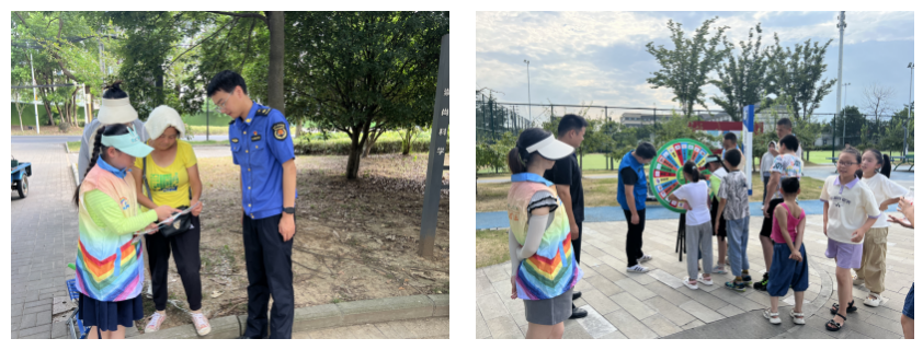 活动首先由垃圾分类志愿讲师通过宣传册重点阐述了生活垃圾分类的重要性和必要性,以及垃圾分类四分法的基础知识。为了更直观地引导小朋友进行垃圾分类,活动中,借助垃圾分类转盘小游戏,将枯燥的垃圾分类知识与趣味小游戏相融合,寓教于乐中让青少年潜移默化地掌握巩固所学知识要点,并带领少先队员志愿者来到广场人群聚集点,由城管队员指导进行垃圾分类宣传,少先队员志愿者用稚嫩的语言讲解垃圾分类知识瞬间吸引居民群众的关注,使居民们更加直观、深入地理解了垃圾分类的重要性和紧迫性。