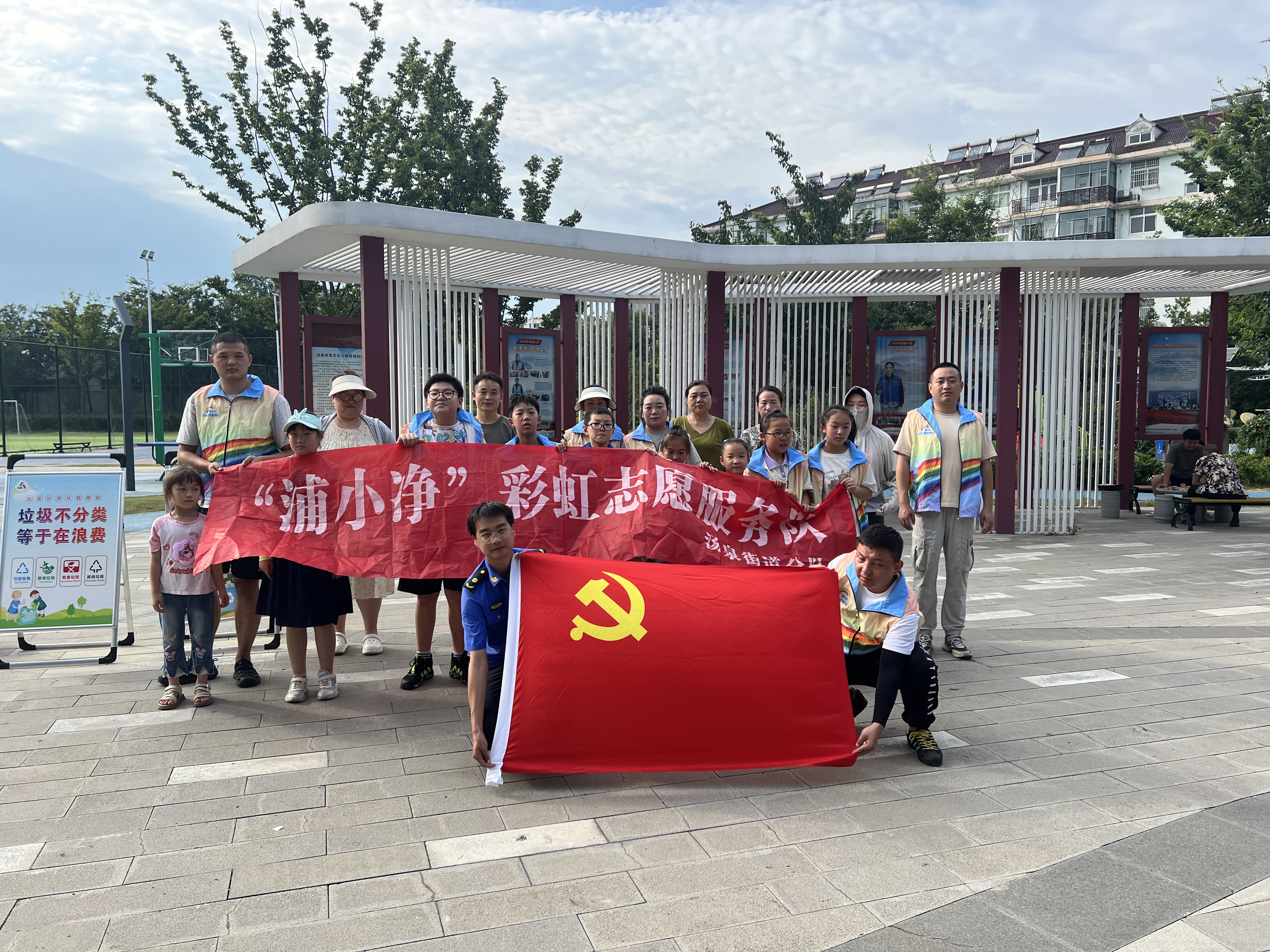 根据南京市浦口区“四清、四拆、四整治”环境整治工作要求,为引导青少年养成垃圾分类好习惯,践行绿色低碳的生活方式。近期,汤泉街道综合行政执法局联合城市治理公众委员、党员干部带领少先队员志愿者在体育文化公园开展“绿色未来,从小做起”暑期宣传活动。