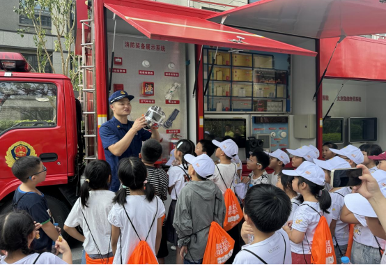 活动中,孩子们带着兴奋和好奇跟着消防员叔叔进行参观,在消防员叔叔的讲解下,孩子们认真观看展示区的消防救援车辆、灭火装备和救援器材等专业设备,这些平时难得一见的设备在消防员叔叔的指导下都可以亲身上手进行操作和体验,“零距离”的体验将让孩子们对消防员的工作有更直观的认识和对消防安全有了更深的理解。