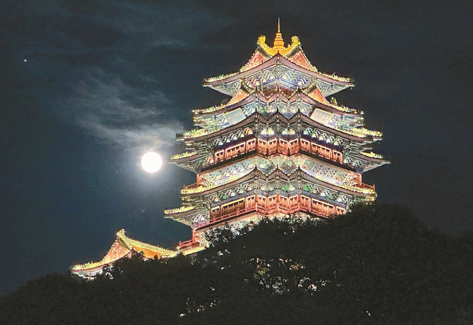 昨日是中秋佳节,“超级月亮”现身南京,万家灯火与皎洁明月遥相呼应,美不胜收。图为阅江楼与“超级月亮”同框。 本报记者 万程鹏 摄