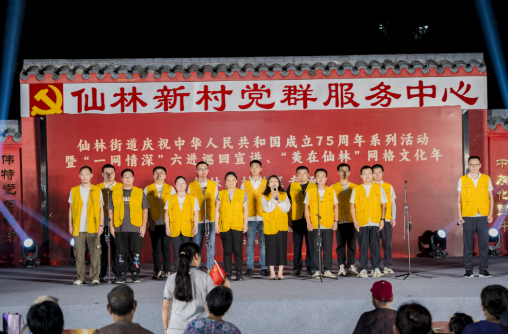 9月12日晚,仙林街道庆祝中华人民共和国成立75周年系列活动启动仪式暨“一网情深”六进巡回宣讲、“美在仙林”网格文化年仙林新村专场活动在仙林新村南区广场举行。