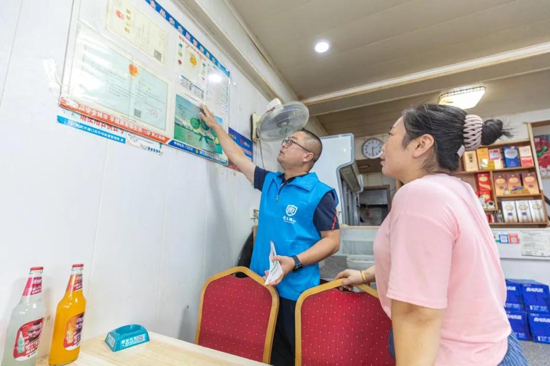 核对店家的证照、查看店内的环境、检查食品饮料的保质期……排查完毕,丁邦超还要递给店铺负责人一张宣传单,告诉他们食品安全的重要性,耐心叮嘱他们要重点关注食材原料、注意餐厨设施清洁卫生。巡查的过程中,丁邦超练就了一双“铁脚板”。巡查当天,丁邦超能走上万步,夏日酷暑炎炎,冬季寒风凛冽,他的City Walk也没有停止。在他看来,守护大家“舌尖上的安全”是件有意义的事。