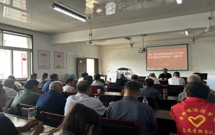 随后,志愿者为在场的居民播放了一部以推广普通话为主题的微电影,展现了普通话作为中华民族共同语言的力量与魅力。在观影过程中,大家被影片中人物因普通话而跨越地域、文化界限,实现顺畅沟通与深刻理解的场景深深打动。居民们纷纷表示,普通话不仅是日常交流的钥匙,更是促进民族团结、文化交融的重要桥梁。“只有我们都说好普通话,心与心的距离才会更近,社会才会更加和谐,文化才能更加繁荣。”一位来自陶村的居民李先生感慨地说道,他的发言赢得了在场所有人的共鸣。