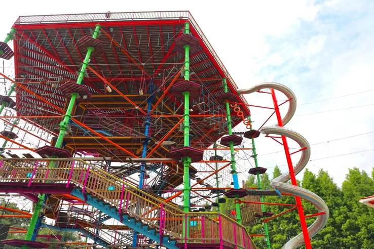 全国规模最大的高空绳索攀爬项目——“金陵矩阵”是园内的特色先导,该项目为德国原版引进,是重点打造的南京首个集绳网攀爬、户外拓展、运动挑战于一体的“体育+旅游”融合项目,拥有平衡木、攀爬网、高空单车等139种挑战元素以及低空蹦极、疯狂滑道、网红秋千等6个明星项目。自推出以来,日益成为公园内亲子溜娃、团建拓展、时尚派对、主题沙龙的热门潮酷打卡地,让市民朋友充分体验“微度假”“户外游”“本地游”踏青休闲、运动游乐的多元乐趣。