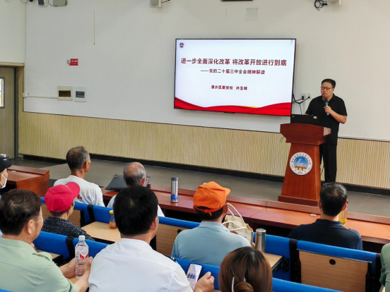 中共二十届三中全会在新的历史起点上,系统擘画了进一步全面深化改革、推进中国式现代化的宏伟蓝图。为了进一步凝聚共识,扩大改革发展的“同心圆”。南京市溧水经济开发区空港社区党总支与南京视觉艺术学院携手党外知识分子、少数民族人士、非公有制经济人士等开展中共二十届三中全会精神的宣讲活动。