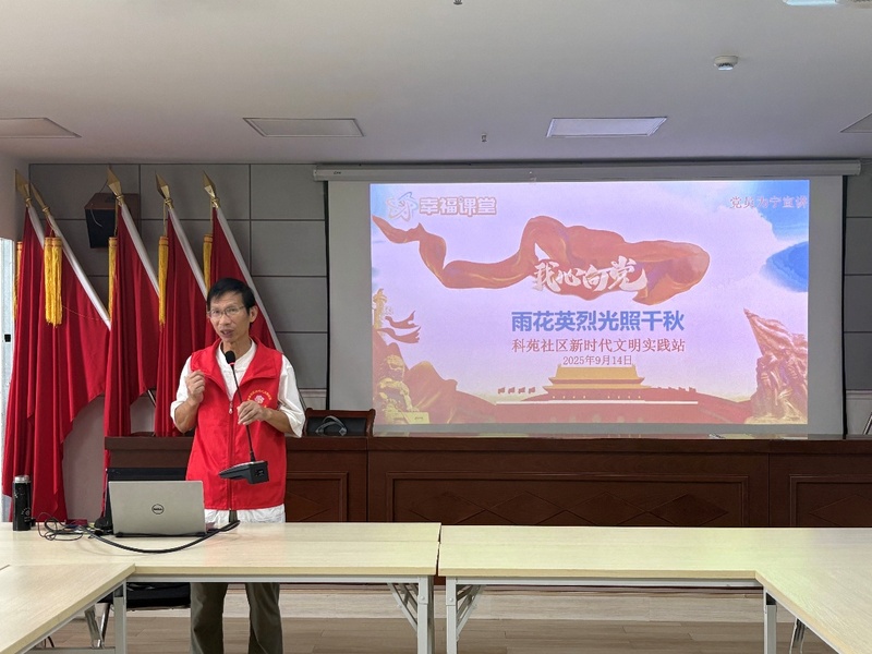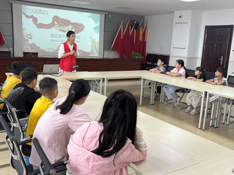 中国江苏网讯 为引导青少年厚植爱党爱国情怀,推动红色教育走深走实,9月14日上午,科苑社区新时代文明实践站举办“雨花英烈光照千秋——‘党员为宁宣讲’主题文明实践活动”。活动特别邀请南京市紫金银辉宣讲团成员、秦淮区教育关工委思想道德建设讲师团讲师刘建明老师,为社区小朋友和家长们带来一次生动的红色课堂。