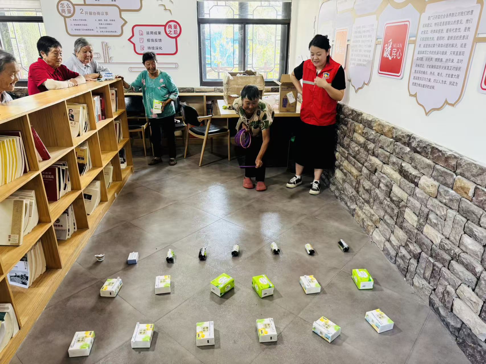 宣讲结束后,电信诈骗知识竞答与趣味互动环节接连上演,彻底点燃现场氛围。竞答环节中,“收到‘保健品包治百病’的推销电话该怎么办?”“陌生人索要银行卡验证码能给吗?”等贴合老人生活的题目依次抛出,老人们凭借刚学到的防骗知识踊跃举手,回答准确的老人还能获得小礼品,现场掌声与欢呼声不断;“套圈识防骗”游戏区里,老人们瞄准写有防诈标语的小礼品,在瞄准、投掷的欢乐中进一步巩固防骗要点。
