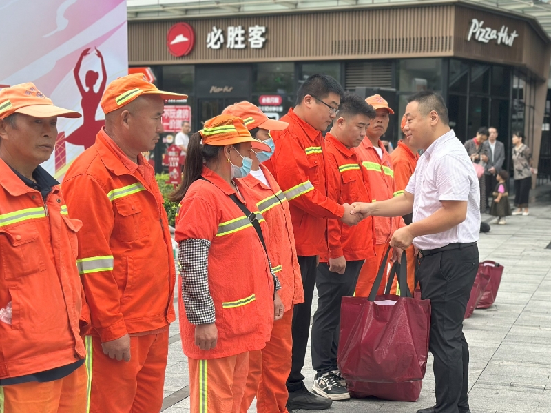 演出间隙,一场温暖的慰问环节格外动人。社区书记尹同财为10 位环卫工人代表递上节日礼包,月饼、粮油等物资满满当当。“谢谢你们守护城市洁净!”朴实话语让环卫工人脸上露出欣慰笑容,也让现场居民感受到“尊重劳动者、关爱身边人”的社区温度。