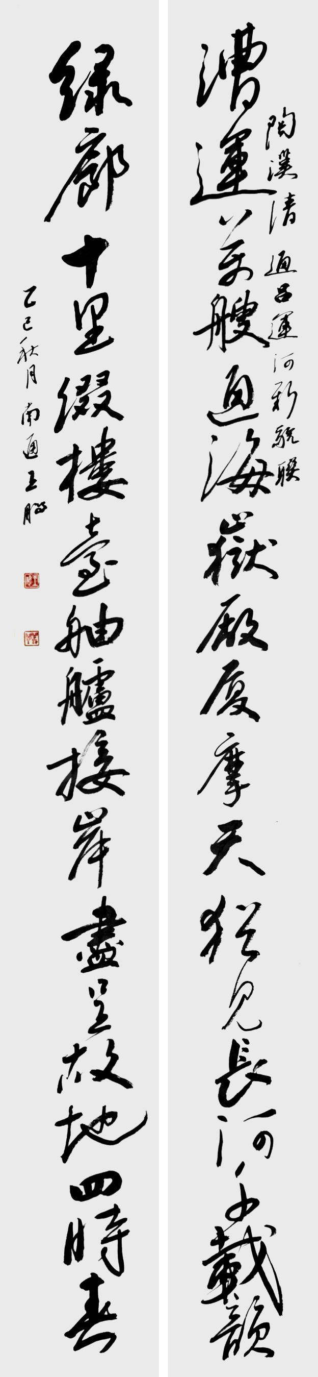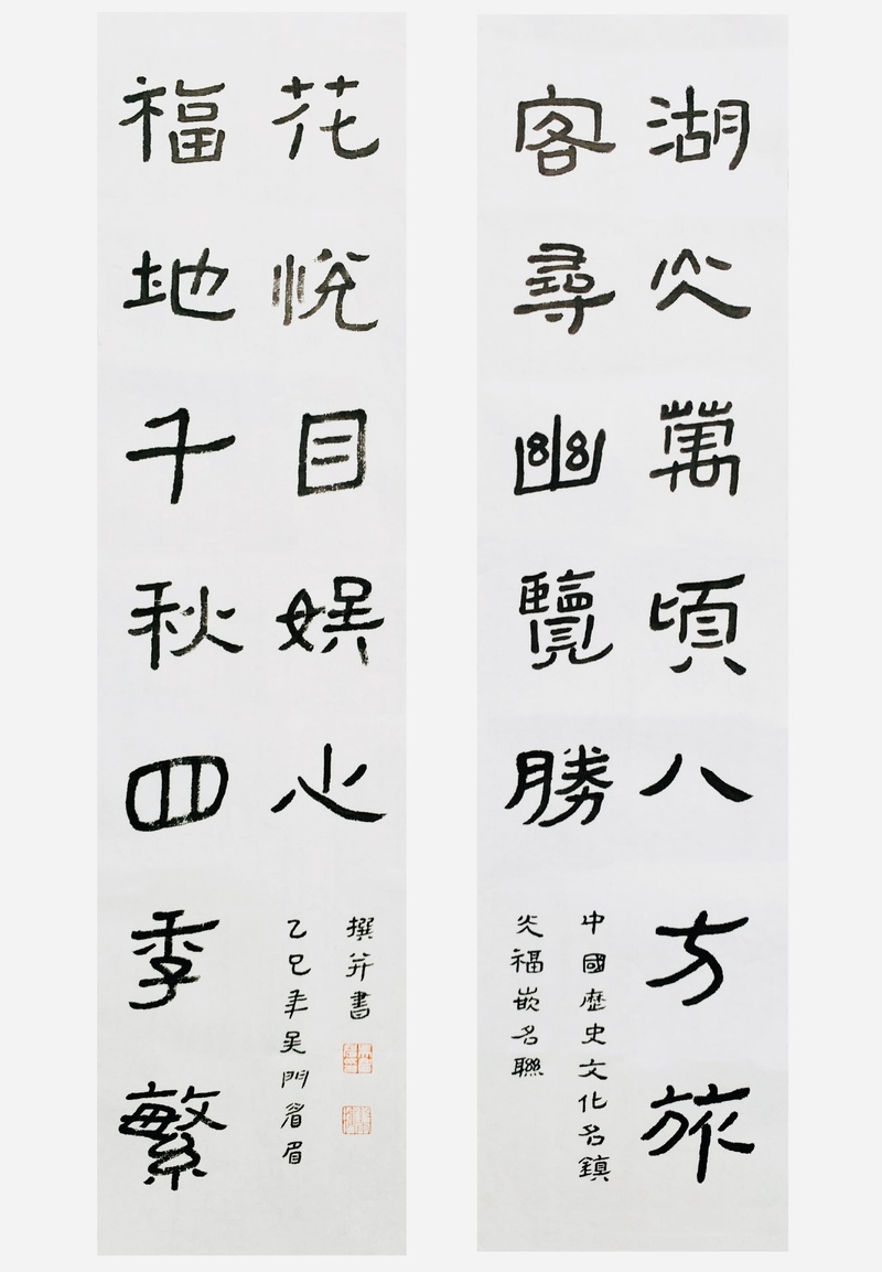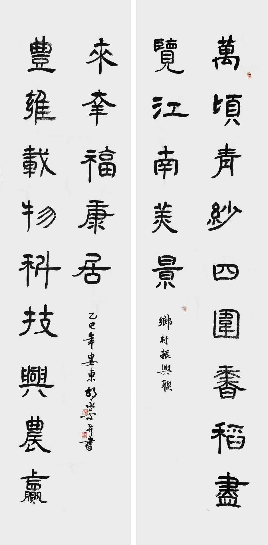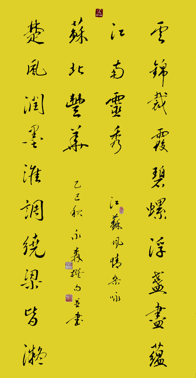 据悉,本次线上展聚焦“水韵江苏”特色与高质量发展主题,展出80 副左右精心遴选的楹联书法作品,内容涵盖多维度主题:既有围绕双节、金秋创作的正能量作品,抒发真挚家国情怀;也有描绘江苏江河湖海自然风貌、展现地域独特风光的篇章;还包含反映江苏深厚文化底蕴、非物质文化遗产、标志性物产的内容,以及聚焦科技创新、智能制造、乡村振兴等领域成就的作品—— 通过现代化产业园、跨江大桥、美丽乡村等发展场景,生动展现江苏高质量发展的丰硕成果,凝聚奋进新征程的磅礴力量。