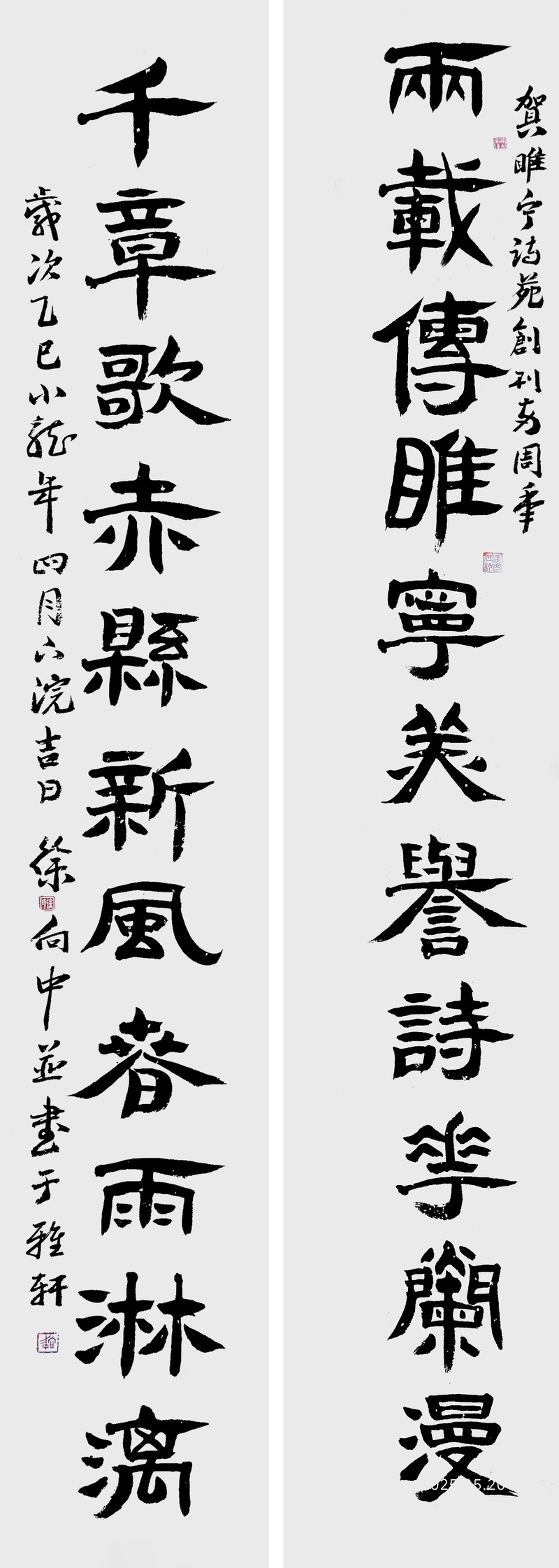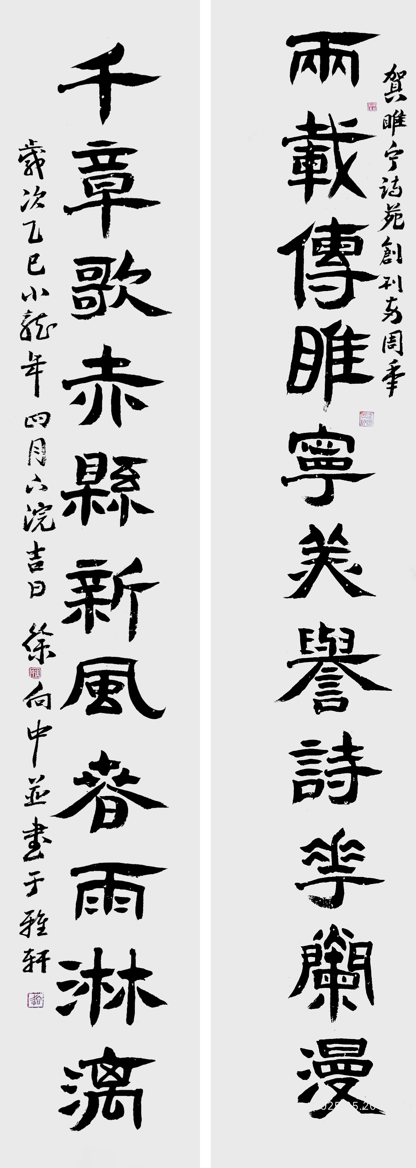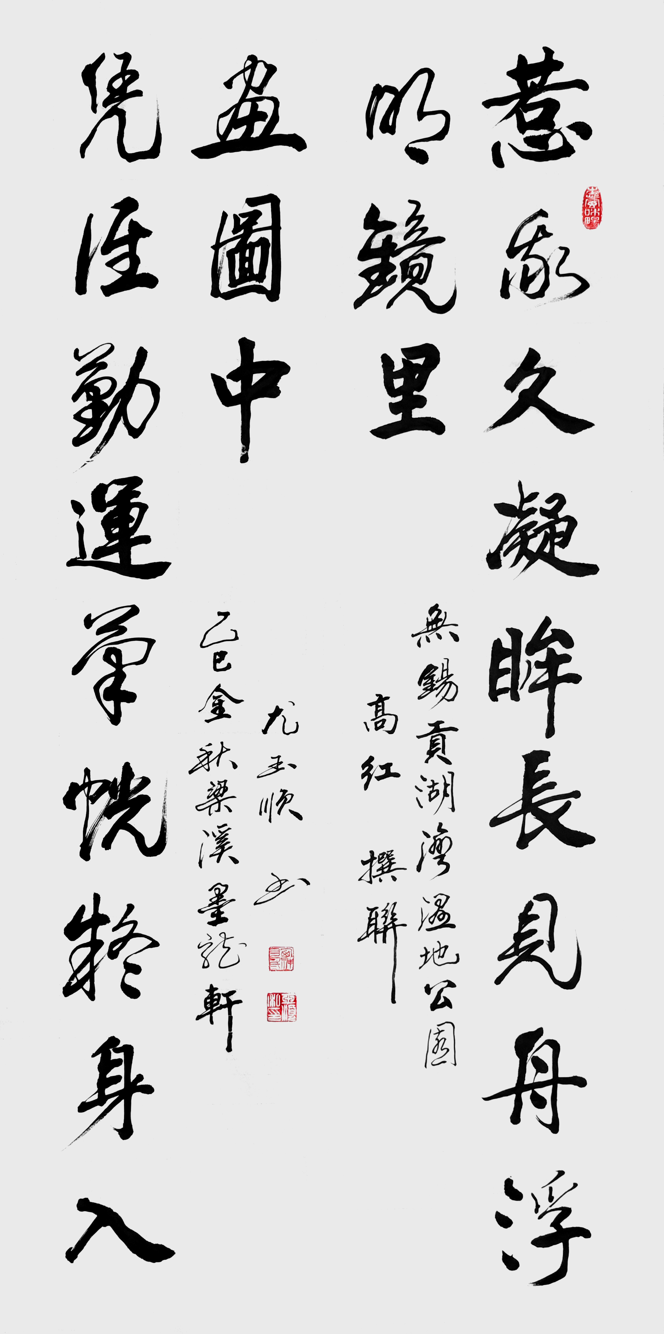据悉,本次线上展聚焦“水韵江苏”特色与高质量发展主题,展出80 副左右精心遴选的楹联书法作品,内容涵盖多维度主题:既有围绕双节、金秋创作的正能量作品,抒发真挚家国情怀;也有描绘江苏江河湖海自然风貌、展现地域独特风光的篇章;还包含反映江苏深厚文化底蕴、非物质文化遗产、标志性物产的内容,以及聚焦科技创新、智能制造、乡村振兴等领域成就的作品—— 通过现代化产业园、跨江大桥、美丽乡村等发展场景,生动展现江苏高质量发展的丰硕成果,凝聚奋进新征程的磅礴力量。