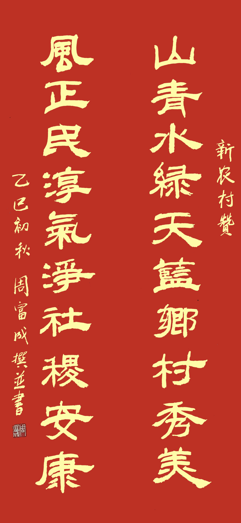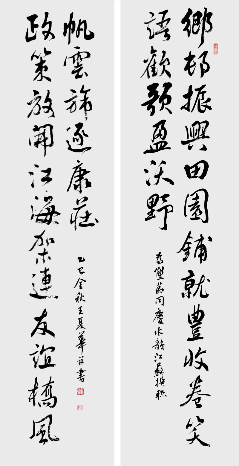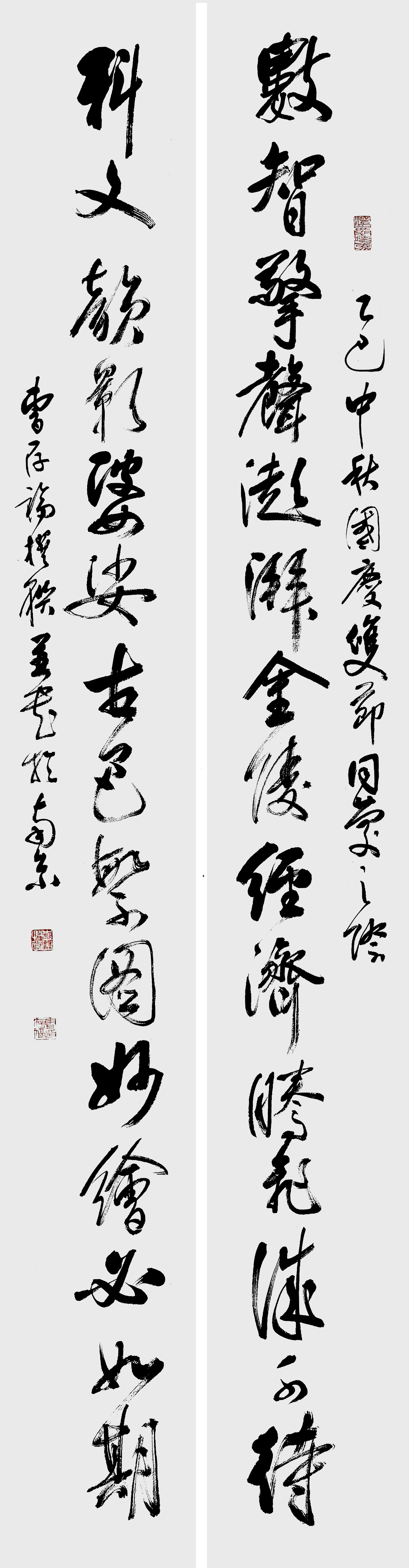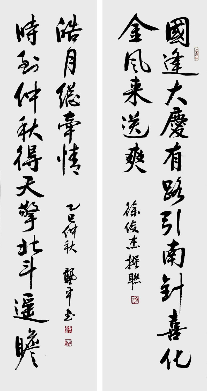 新华日报·交汇点讯(记者 华诚)金秋送爽,丹桂飘香。在中秋、国庆双节同庆之际,为礼赞江苏深厚的历史文化积淀与新时代发展成就,生动展现“强富美高”新江苏建设画卷,新华日报·交汇点大平台、江南时报、江苏省楹联研究会、南京市老干部活动指导服务中心联合主办“金秋濡彩笔 奋进启新程”线上楹联书法作品展,以楹联与书法为载体,用墨香楹韵寄托家国情怀,以笔墨丹青书写时代华章。
