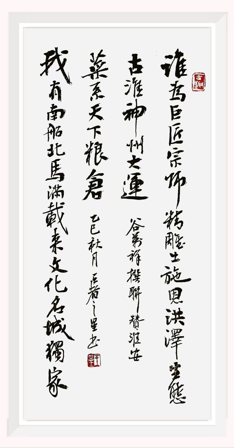一江激浪,千载文光,看云锦飞霞,苏绣流芳,大运河浪涌诗潮连海岱: