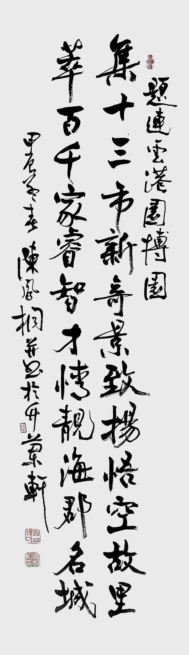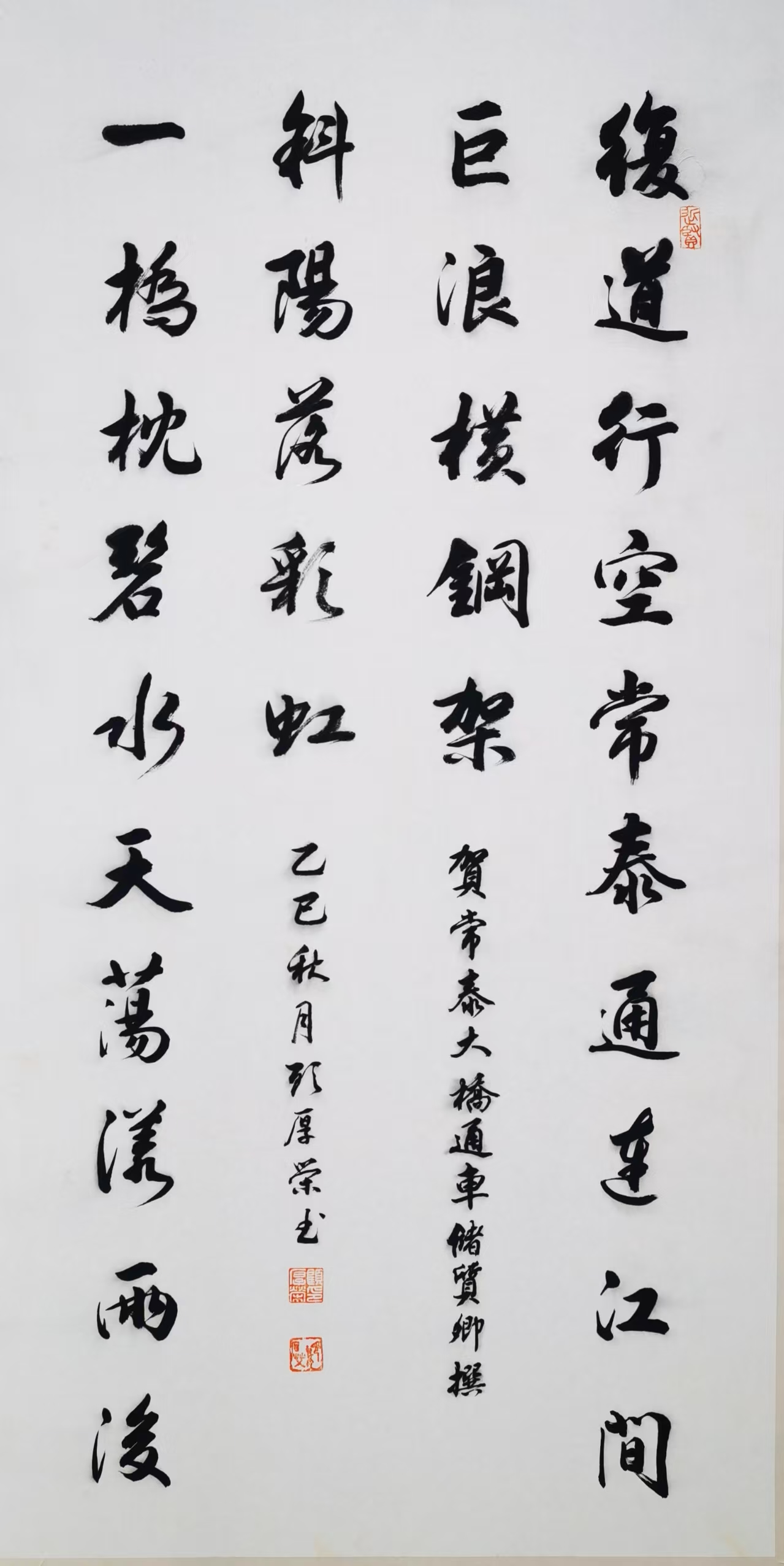 九域腾龙,八方凤翥,喜稻香匝地,桥凌碧落,新时代歌吹盛世壮乾坤。