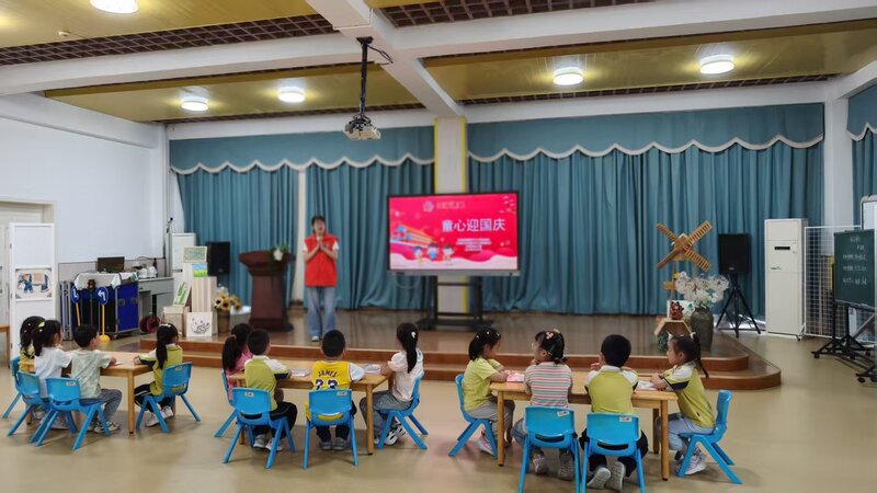 活动伊始,志愿者化身为引人入胜的历史叙述者。从“开国大典”的礼炮轰鸣,到国旗国徽背后的精妙寓意;从“国庆”一词的庄严由来,到神州大地七十六载的壮丽征途,志愿者通过图文并茂、互动问答的形式,生动描绘出国家发展的宏伟画卷。孩子们专注的目光紧随志愿者引导,踊跃抢答时洋溢着探索的兴奋——“国庆原来是这样诞生的!”“我知道!国徽上有麦穗,代表丰收!”历史知识像种子,在年轻的思维土壤上悄然萌发。