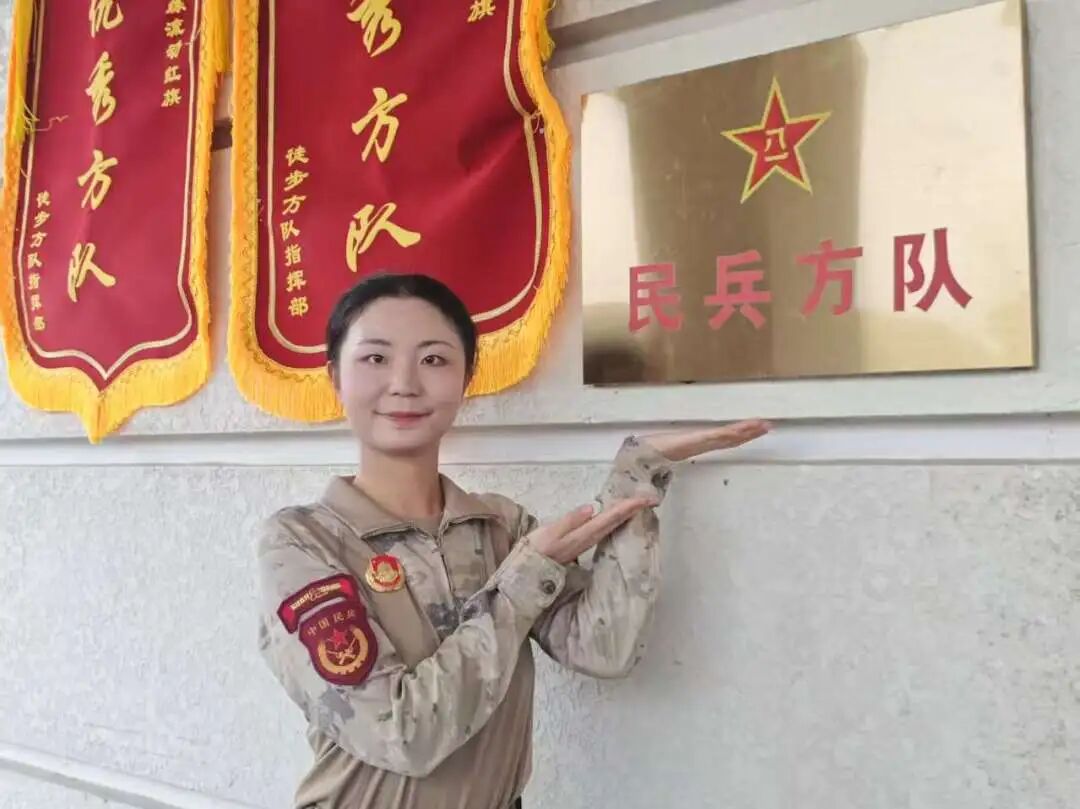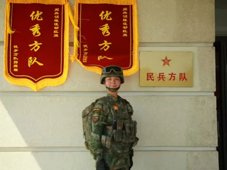 从济南章丘的国防训练基地到北京昌平的阅兵村,再到九三阅兵时的长安街,195天的淬炼藏着太多“咬牙坚持”,烈日下站军姿,汗水把衣背浸出盐渍;深夜绑着沙袋练踢腿,血水与泪水悄悄混在训练服上。“横刀立马的民兵方队,是汗水、血水和泪水铸成的。”她总是这样说。