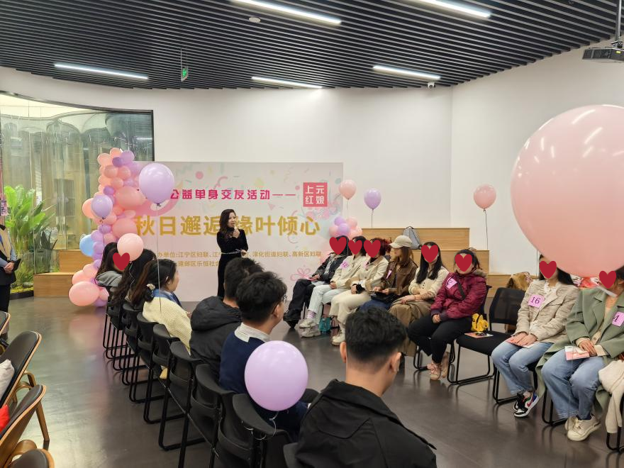 中国江苏网讯 10月26日下午,南京生命科技小镇展览馆内桂香萦绕、暖意融融,“秋日邂逅 缘叶倾心”单身青年人才联谊会在此温情启幕。本次活动由江宁区妇联牵头,联合淳化街道妇联共同主办。吸引了来自南京各行各业的50位青年才俊参与,为青年群体搭建高质量交友沟通平台,助力其在秋日里寻觅心动缘分。