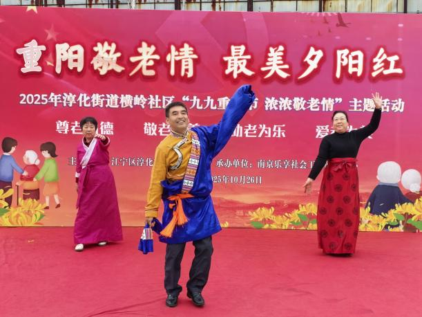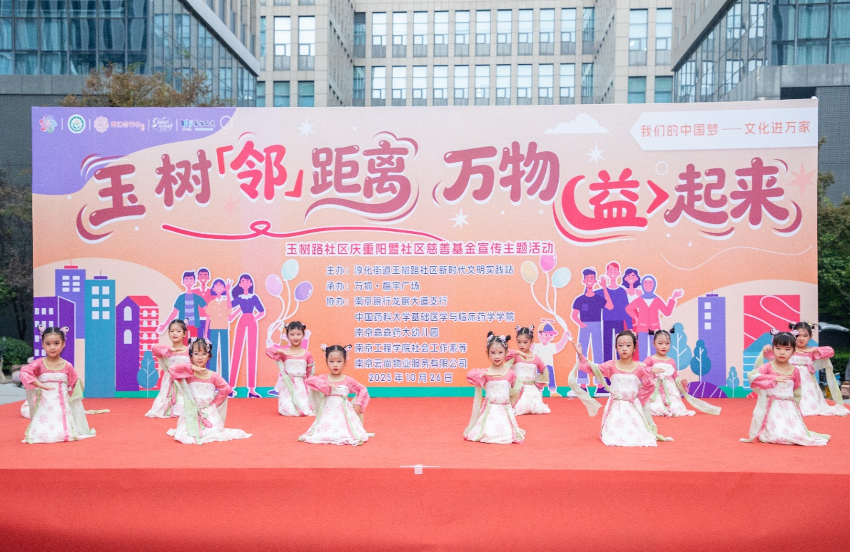 淳化街道玉树路社区新时代文明实践站开展“玉树‘邻’距离,万物‘益’起来——重阳暨社区慈善基金宣传主题活动”。活动以文艺汇演、慈善宣传、节俗体验、公益服务等形式,融合敬老温情、慈善传承与邻里共融,打造了一场社区重阳盛会,吸引数百名居民参与。在“重阳大舞台”环节,朗诵、儿童表演、退役军人演唱等节目轮番上演。现场的“重阳游园会”,设置了留言板、慈善知识互动、非遗手作等特色区域。此外,中国药科大学的“金秋防慢病”服务站、南京银行的“老人防诈公益小铺”体现了社区多元公益服务力量对居民的暖心关怀。