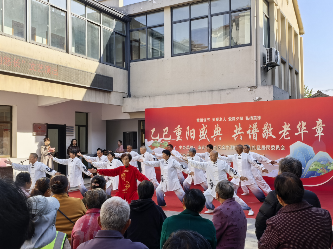 长山社区为辖区老年居民打造了一场“乙巳重阳盛典 共谱敬老华章”的文化盛宴。社区广场上,舞蹈队员们身着绛红色舞服,随着《夕阳红似火》的旋律翩翩起舞,展现着老年人的活力与风采;太极队员们则身着统一白色太极服,动作刚柔并济、行云流水,尽显从容与淡定。精彩的文化展演赢得了台下观众的阵阵掌声。活动最后,社区工作人员将一份份饱含祝福的重阳糕送到每位老人手中,现场充满了温馨与欢乐。