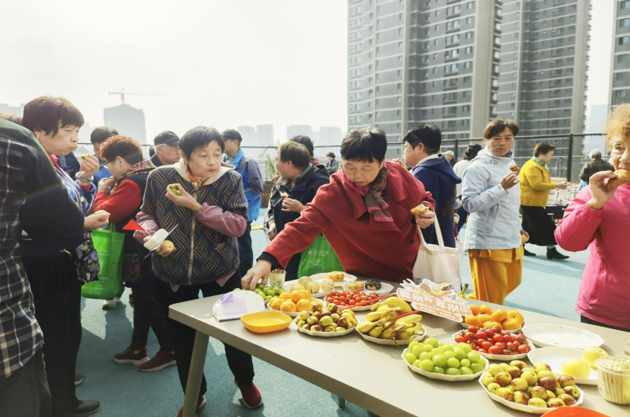 传统饮食的“场景化升级”。重阳糕、菊花茶是节日标配,但街道将“家庭食用”升级为“社区社交场景”——科技园社区的冷餐区,不仅提供低糖重阳糕(适配老年人现代健康需求)、应季水果,更设计“幸福传递”互动游戏、“童心送暖”环节:幼儿园小朋友向长辈奉送糕点并送上祝福,既让孩子理解“尊老”传统(代际传递),也让老人在“被尊重”中感受社区温情;而老人们围坐品尝美食、交流“孙子上学”“社区体检”等日常话题,更让“传统饮食”成为拉近邻里关系的纽带,实现“节日饮食+现代社区社交”的转化。