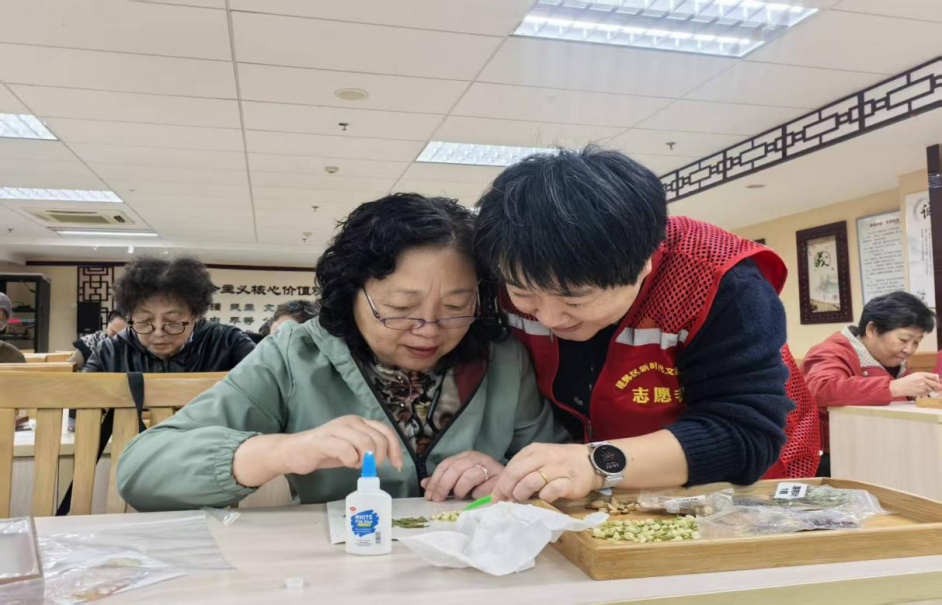 非遗工艺的“实用化改造”。传统烧箔画、中草药文化多局限于“技艺展示”,街道则赋予其现代生活价值——金穗花园社区的“烧箔画体验”,不再是单纯的技艺教学,而是让老人与孩子结对创作“重阳主题作品”:老人传授生活经验与传统审美,孩子注入现代创意,作品既成为家庭纪念,也让非遗从“专业技艺”变为“亲子互动载体”;中胜社区的“中草药香氛画”更具创新:将艾草、陈皮、丁香等传统药材(药用价值)与木质画框、拼贴艺术(美学价值)结合,老人们创作的蝴蝶、葫芦、福字图案,既是家居装饰,又能驱虫安神,让“传统药材”从“药房物品”变为“提升生活品质的文化产品”,实现“非遗技艺+现代生活需求”的融合。