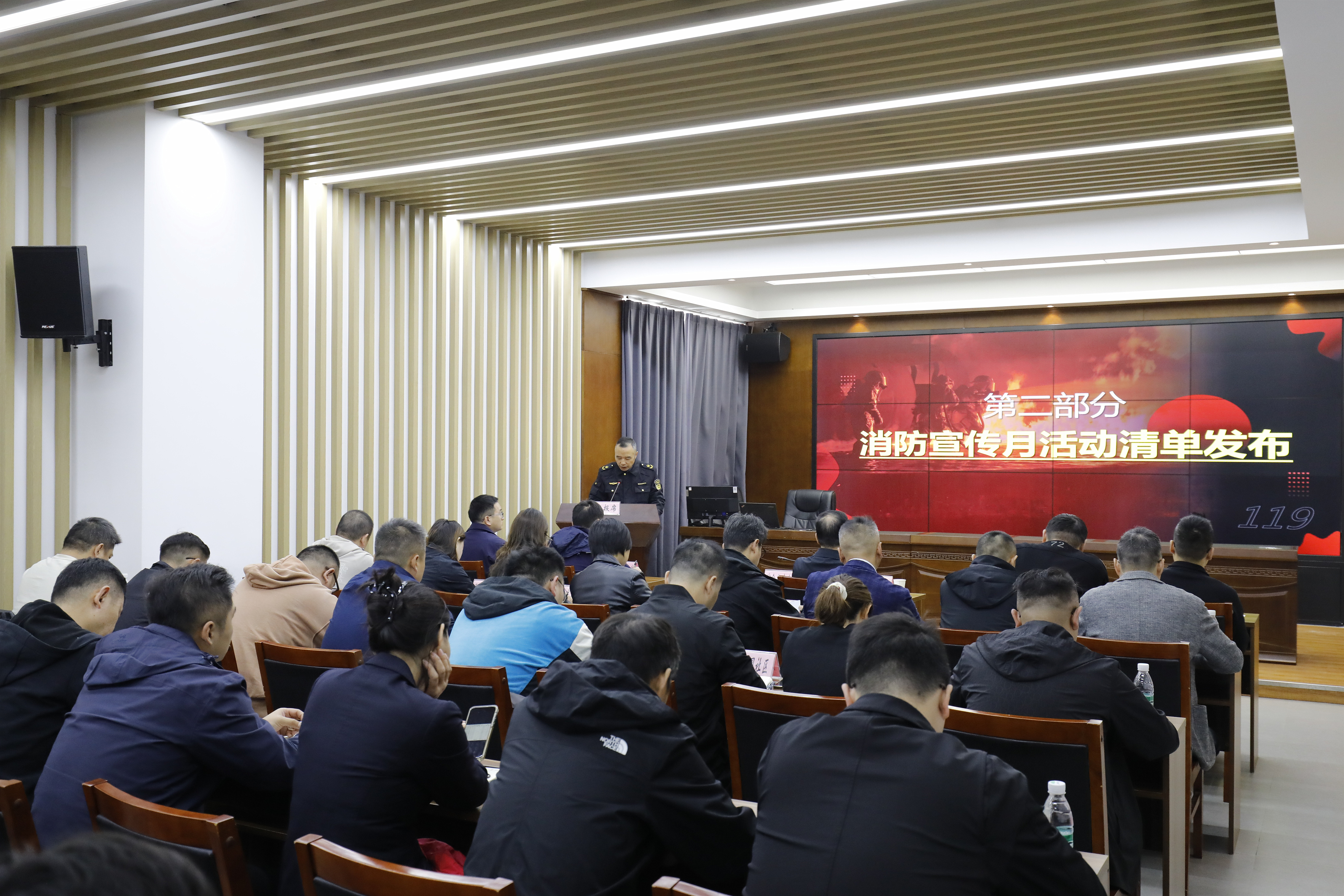 中国江苏网讯 近日,江心洲街道隆重举行以“全民消防、生命至上——安全用火用电”为主题的第34个全国消防宣传月动员大会暨启动仪式。街道分管领导、应急消防一体化工作站负责人、各社区分管负责人与相关职能科室负责人,以及辖区建设项目、居民小区、商业综合体、企业园区等单位负责人共计80余人参加会议。