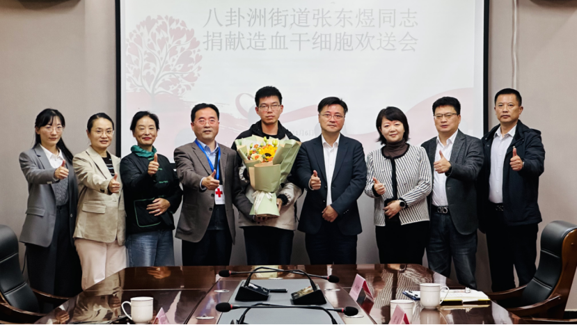 11月6日,八卦洲街道为张东煜同志举行造血干细胞捐献欢送会。张东煜是八卦洲街道首位,是栖霞区第32位捐献志愿者。街道党工委书记周朱伟、区红十字会党组书记马奎、街道党工委副书记劳慧、区红十字会副会长丁彤、办事处副主任张伟等参会。