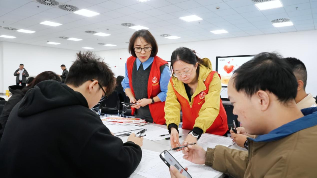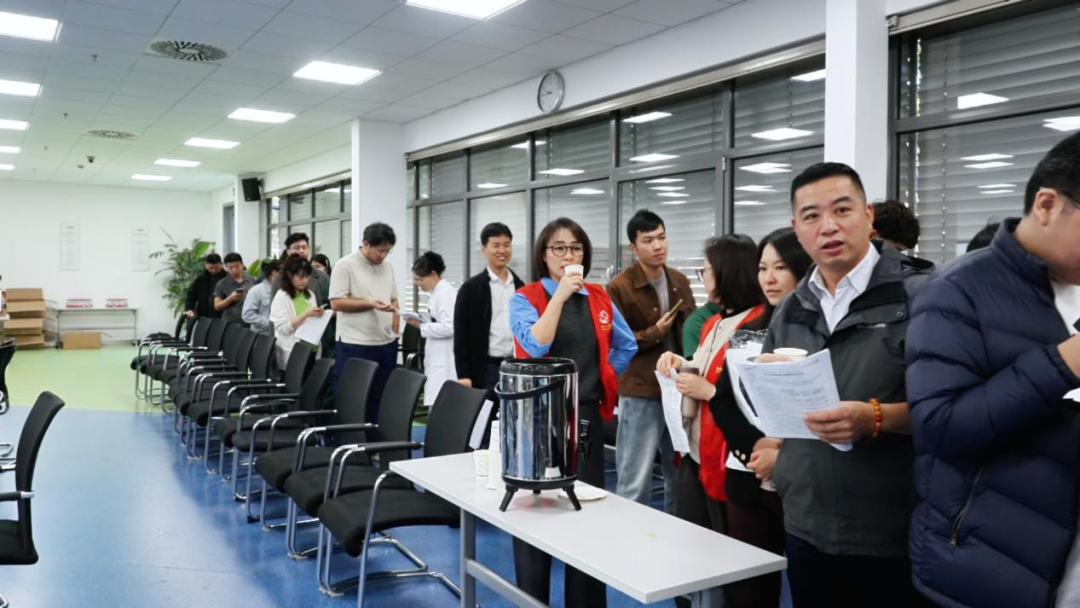 活动现场,从登记、体检到采血、休息,各功能区域划分清晰、秩序井然。身着红马甲的志愿者、南京红十字血液中心和江宁开发区红十字会的工作人员提供专业护航与温暖保障:细致讲解注意事项,轻声安抚情绪;休息区也早已备好热水与补充能量的点心;献血后有志愿者在旁边保驾护航。每一位献血者在奉献爱心的过程中,都能感受到如家人般的贴心与安心。