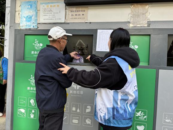 活动中,垃圾分类志愿者们通过桶边邻指导,对居民投放的垃圾进行破袋检查,在现场及时纠正居民的错误分类行为,指导居民正确投放垃圾,进而大大提高垃圾分类的准确率。如果发现错误或者未分类的,及时向居民解释并指导其正确分类投放,确保垃圾得到正确处理,帮助居民进行分类,并零距离向居民阐述垃圾分类的重要性,讲解可回收物、有害垃圾、厨余垃圾和其他垃圾四大分类标准。通过亲切、易懂的话语,向居民们传递垃圾分类的正确方法和重要性。