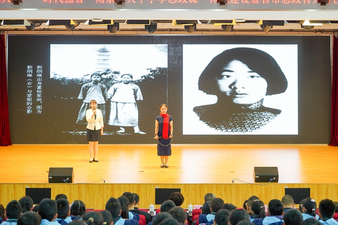 在“信仰・旋律启航”篇章,江苏东方交响管乐团与南京市文靖东路小学合唱团联袂演绎《红星歌》,激昂旋律点燃全场热情。雨花英烈事迹宣讲团以“郭纲琳给哥哥的信”和“铜钱磨制的铜鸡心”为核心,讲述革命文物故事,沉浸式再现烈士斗争场景,让家国情怀与不屈精神直抵人心。南京市文靖东路小学教师张典开展了一堂音乐思政课,为同学们深入解读红色旋律背后的精神密码,让学生在艺术浸润中感悟信仰力量。