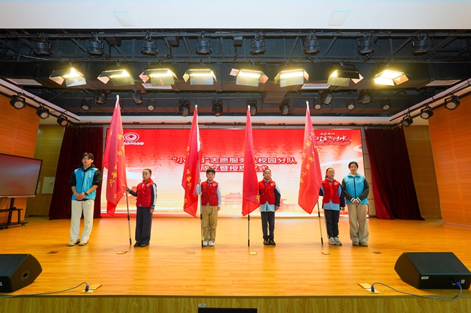活动现场,两场意义非凡的授旗仪式相继举行,将现场氛围推向顶点。由江宁区、雨花台区、高淳区、溧水区联合组建的“小雨滴”志愿服务队校园分队正式成立,中小学志愿者代表从高校志愿者代表手中接过旗帜,未来,他们将一起以“小雨滴”之名,走进场馆讲解红色故事、在校内开展思政实践。随后,“赵良璋中队”成立暨授旗仪式庄重启幕。赵良璋烈士后人徐彩平将队旗郑重交予中队代表,队员们以倡议书立下传承誓言,展现了新时代少年的红色担当。