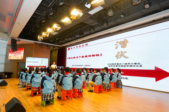 “传承・使命接力”篇章中,南京市文靖东路小学毕业生袁一乐分享了自己的成长故事。作为革命烈士后代,他立志考入国防科技大学,以“科技报国”践行使命传承,其坚定信念赢得现场阵阵掌声。亲子情景剧《童声回响,信仰传承》则通过温情对话,演绎了暑期学生与家长走进雨花台烈士纪念馆的感悟,展现红色基因在家庭中的脉脉相传的场景。