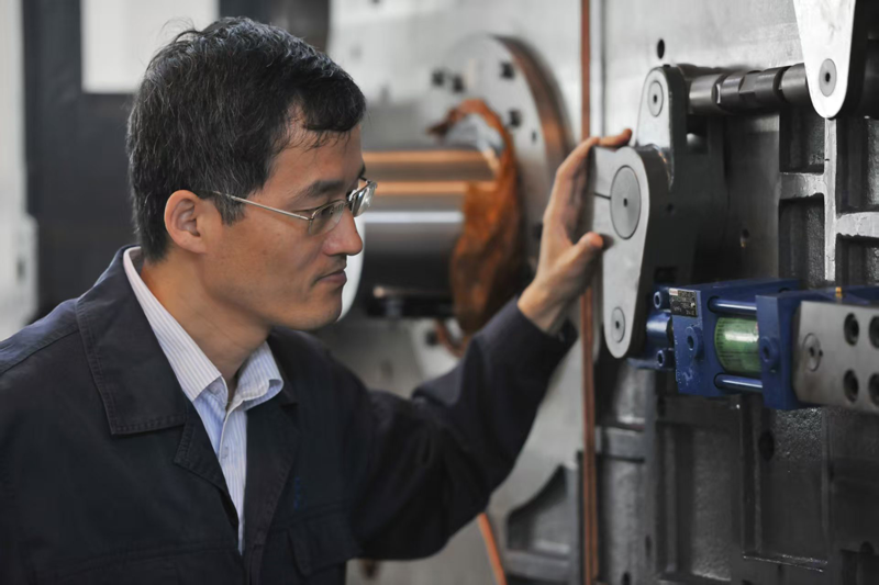 这份沉甸甸的责任感,成了他“择一事终一生”的起点。入职初期,面对国产设备“噪声大、精度差、效率低”的困境,他主动啃下“硬骨头”——从机械零件加工工艺入手,拿到图纸不急于“按图索骥”,而是拆解原理、推演逻辑,从单个部件到整机系统,做到“知其然更知其所以然”。一次,他发现一份图纸存在工艺缺陷,哪怕明白这会冒得罪人的风险,仍坚持指出问题。在他看来,技术不较真,就是对国家不负责任。最终,方案在他的坚持下得以优化,也让“坚守专业、印制报国”成了他刻入骨髓的信念。