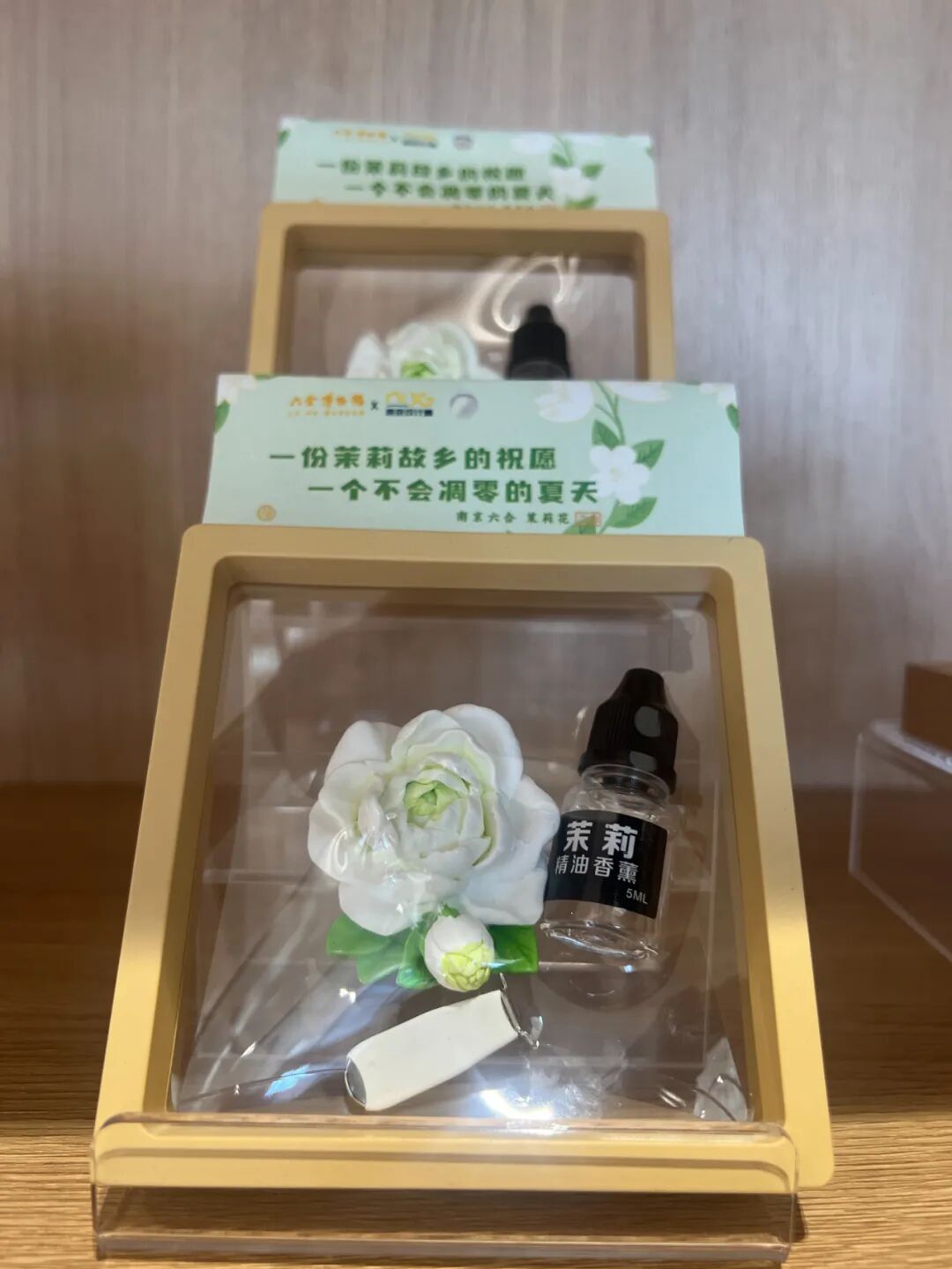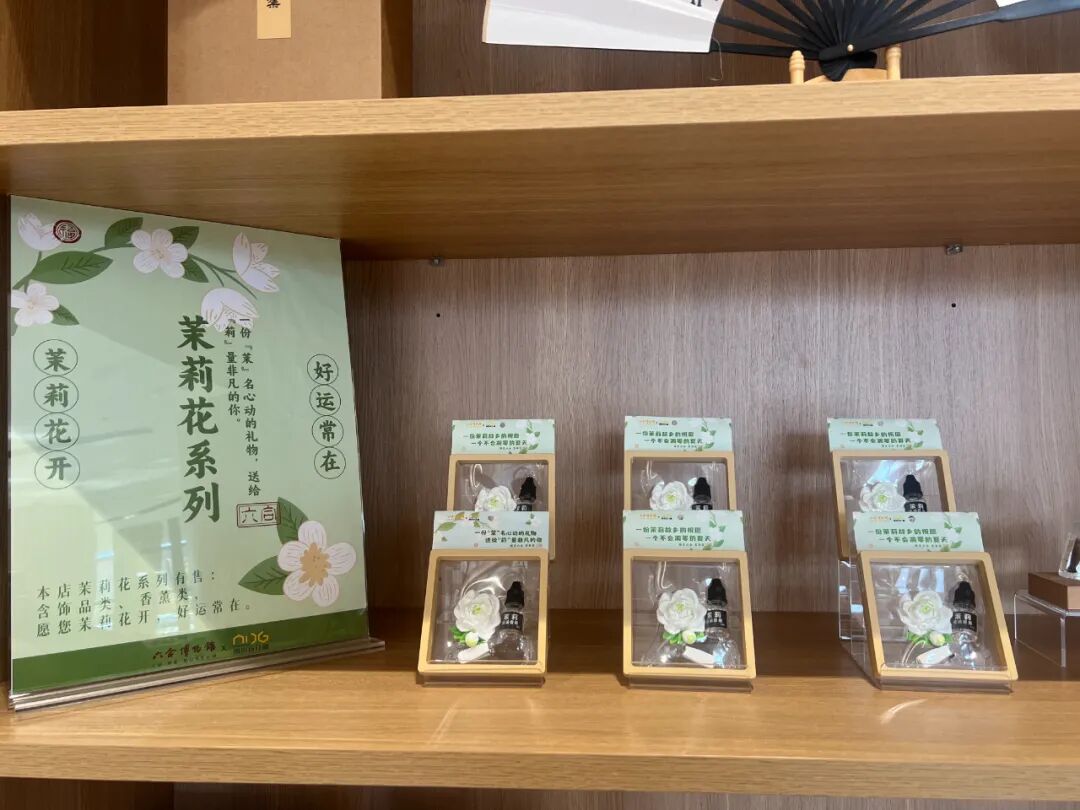 逛累了,不妨走进一旁的文创小店。一瓶茉莉花香薰是必入好物,将金牛湖的清甜香气打包带走,让博物馆的记忆在鼻尖延续。除此之外,金牛湖鳙鱼头的鲜香故事、八百桥“僧众说法”的民间传说,都被做成了生动的图文展板与互动视频,让厚重的文化变得可触可感。