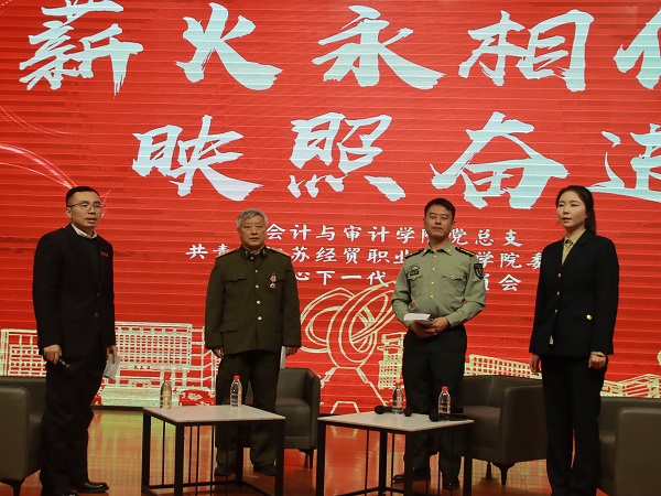 中国江苏网讯 近日,江苏经贸职业技术学院会计与审计学院在江宁校区举行“薪火永相传,映照奋进路”主题信仰公开课。活动以一场特殊的三代对话为主线,邀请同具入伍经历的退休老教师李建国、青年教师张慎安、学生蒿蓝泽作为嘉宾,分享他们将军人意志与纪律融入事业人生的奋斗故事,为现场500余名师生呈现了一堂生动深刻的思政课。