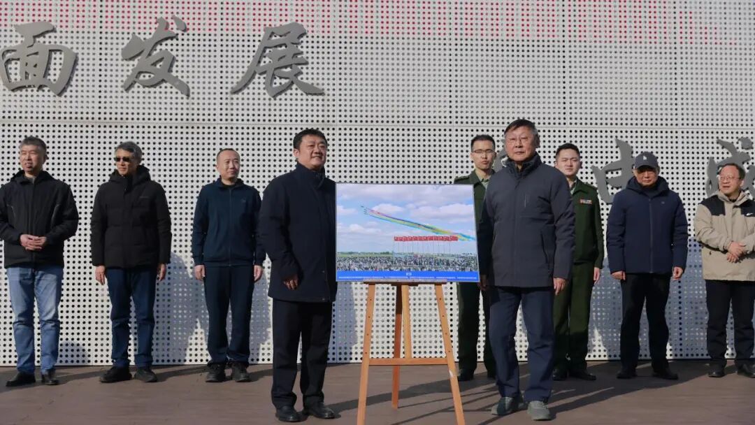 建邺区教育局局长戴喜与江苏省航空运动协会会长陈春宁共同开启《国之重器》摄影展巡展。