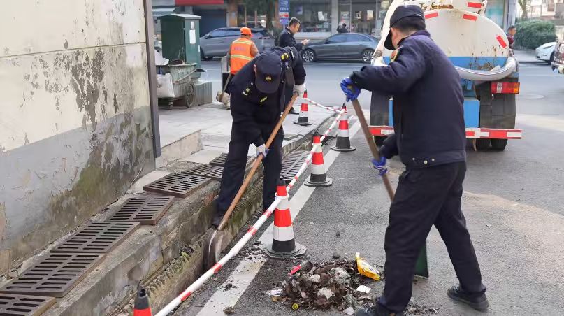 基于排查结果,城管部门制定了“分类施策、精准清疏”的专项行动方案,从设备、人员、流程等多方面进行优化,确保清掏工作高效推进。截至目前,已完成55余处雨水箅子的清掏工作,宣传引导沿街商户90余户。