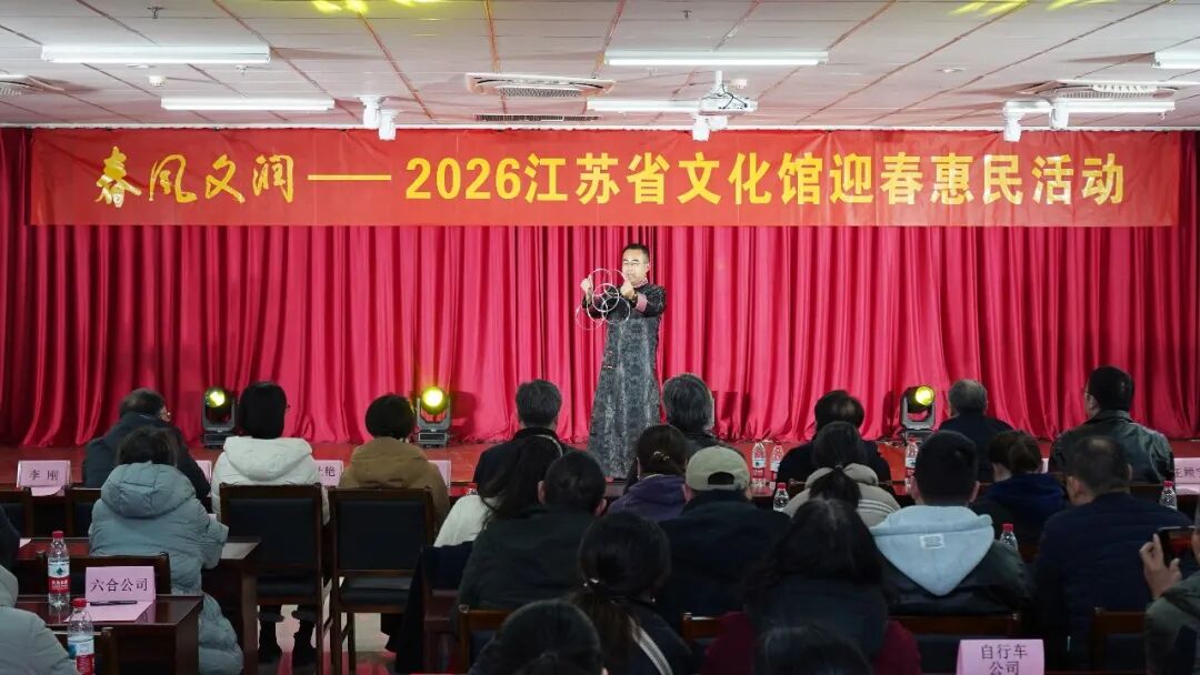 2026年1月9日下午,南京公共交通(集团)第二客运分公司的场站内欢声笑语,墨香浮动。“春风文润”2026江苏省文化馆迎春惠民活动的第一站走进了这群城市“摆渡人”中间。这不仅是一场春节前的慰问活动,更是一次“美的流动”全省优质公共文化服务品牌共创行动的具体实践,是“人民的终身美育学校”向“城市流动风景线”的温暖奔赴。