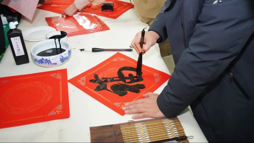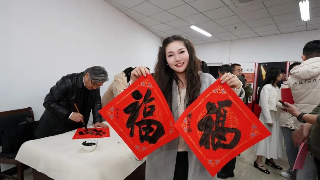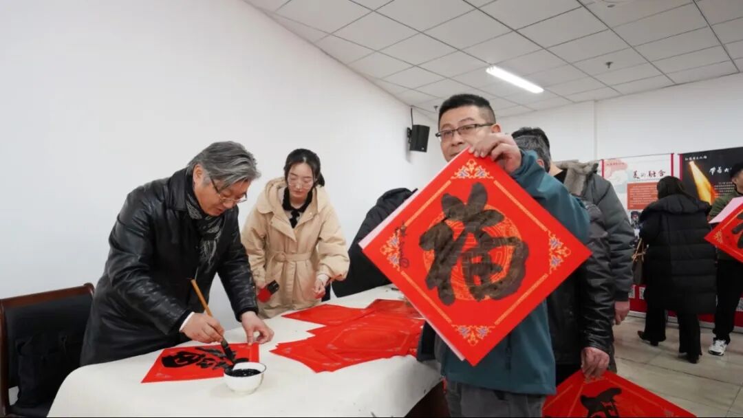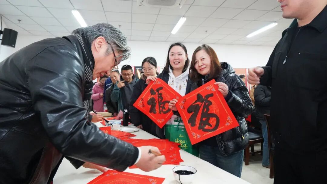 下午两点,活动在浓郁的节庆氛围中拉开序幕,来自省、市文化馆的书法家们研墨挥毫,笔走龙蛇。一个个饱满的“福”字、一幅幅寓意吉祥的春联在笔尖诞生,墨迹未干便被一旁的公交职工们欣喜接过。他们中,有刚结束早班的驾驶员,有忙碌了一上午的调度员,也有难得闲下来的后勤保障人员。“平时都是我们为市民服务,今天文化馆的老师们专程来为我们送‘福’,感觉特别温暖,这年味儿一下就浓了!”一位手握“福”字的公交老师傅感慨道。这“福润万家”的现场,送的不仅是传统文化符号,更是一份对平凡岗位上坚守者的由衷敬意。