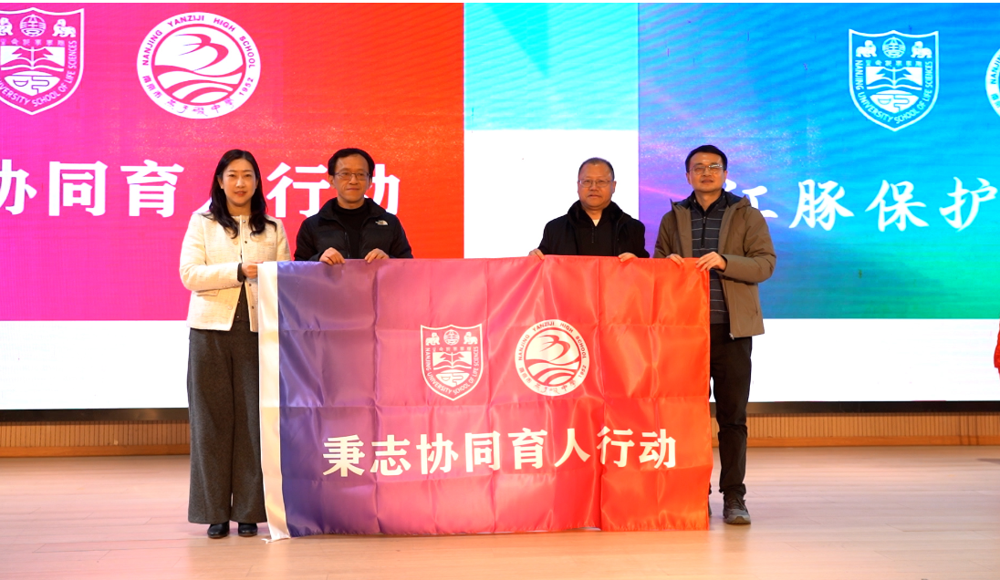 南京大学生命科学学院副院长戈惠明表示,学院将充分发挥科研与人才优势,通过精神宣讲、知识分享、实践指导等方式,与燕子矶中学构建长效机制,助力区域教育协同发展。随后,双方进行了庄重的授旗仪式,“秉志协同育人行动”与“江豚保护在行动”两面旗帜的传递,象征着合作正式启航,使命薪火相传。从高校教授带来的深入浅出“生命科学第一课”,到这场跨越学段的旗帜交接,知识的传递与精神的共鸣在此间生动流淌。
