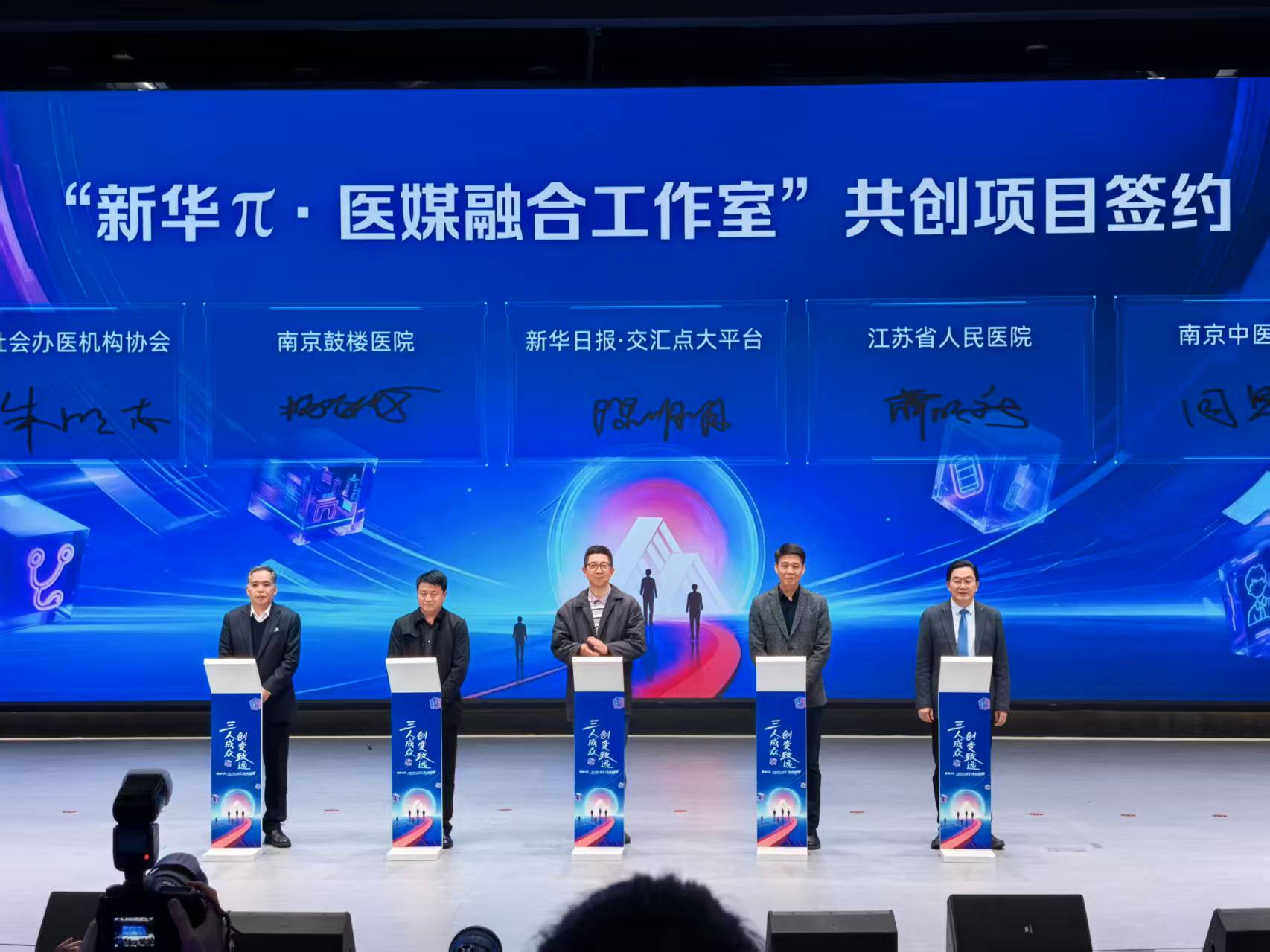 新华日报·交汇点讯(记者张承辰 刘洁 杨胜利)1月18日,2026交汇点共创周主题沙龙在新华报业传媒集团“智汇星空”剧场举行,400多位来自社会各界的共创伙伴与嘉宾齐聚现场,共同见证“新华π·医媒融合工作室”共创项目签约仪式。此次工作室的成立,标志着主流媒体和医疗健康资源实现精准对接,打造健康传播与舆情治理协同新平台,为“健康中国”建设注入“媒体+产业”新动能。