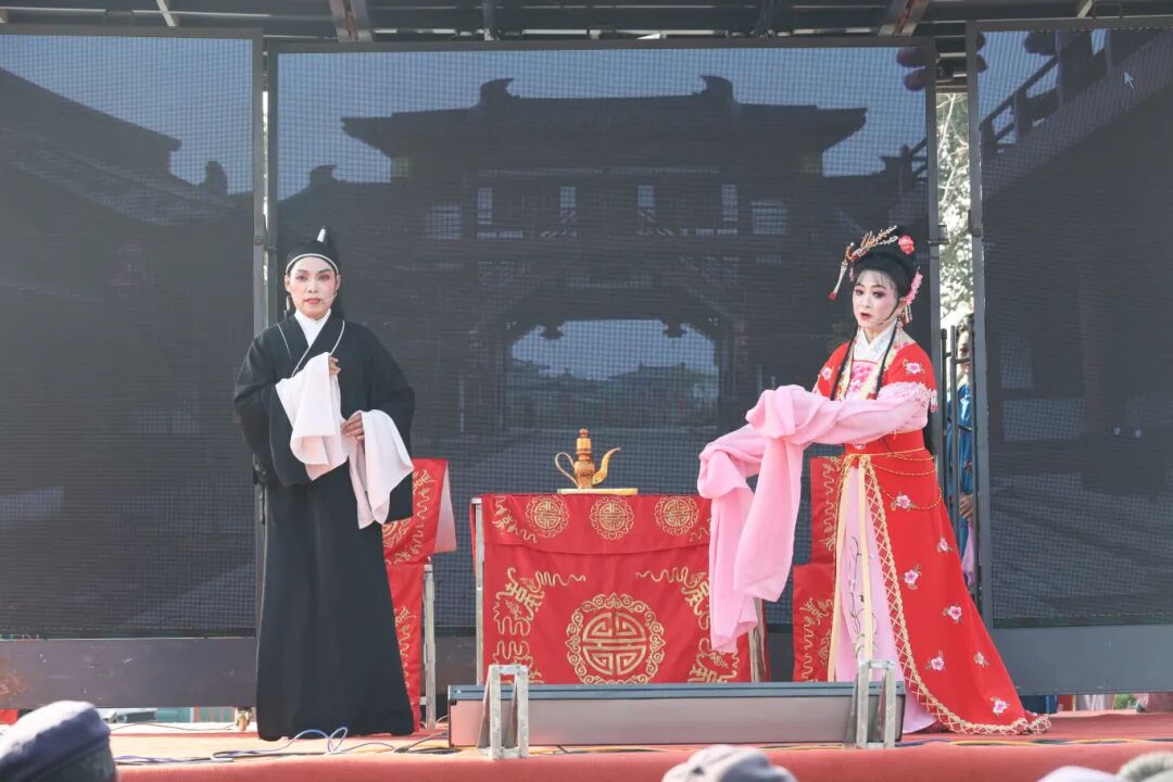 线上线下联动的打卡活动同样人气爆棚。游客们转发活动海报、发布九宫格朋友圈,积极参与集章打卡,定制盲盒、免费摄影服务、马年专属礼品等福利不断送出。国风NPC随机穿梭现场,与游客趣味互动,解锁隐藏惊喜,让国风与年味碰撞出别样火花。下午1时,“茉莉花开·艺润溧水”戏曲演出正式开演,经典选段轮番登台,演员们扮相精致、唱腔醇厚,引得戏迷朋友们阵阵叫好,为此次活动再添一抹文化亮色。