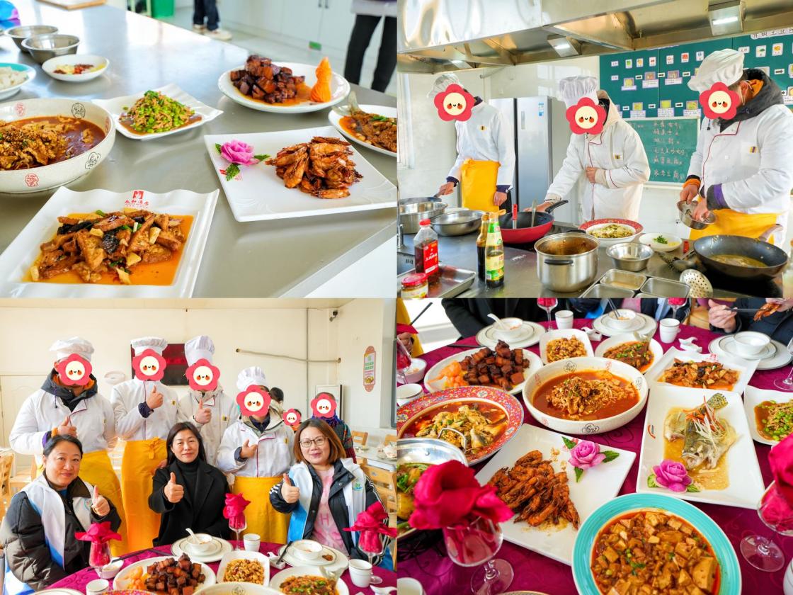 中式烹饪展示区堪称本次活动的高光时刻。在新东方老师的悉心指导下,职业班的学生化身“小小厨神”,切配、翻炒、调味、摆盘,每一个步骤都娴熟流畅,水煮肉片的鲜辣过瘾、酸菜鱼的酸爽开胃、油炸大虾的金黄酥脆,一道道家常菜色香味俱全,摆盘更是精致考究,尽显专业风范。用餐环节,小厨师们主动分享介绍,稚嫩的话语里满是自豪。老师们细细品尝,频频点头称赞,餐桌间的欢声笑语,交织成跨越隔阂的温情乐章。