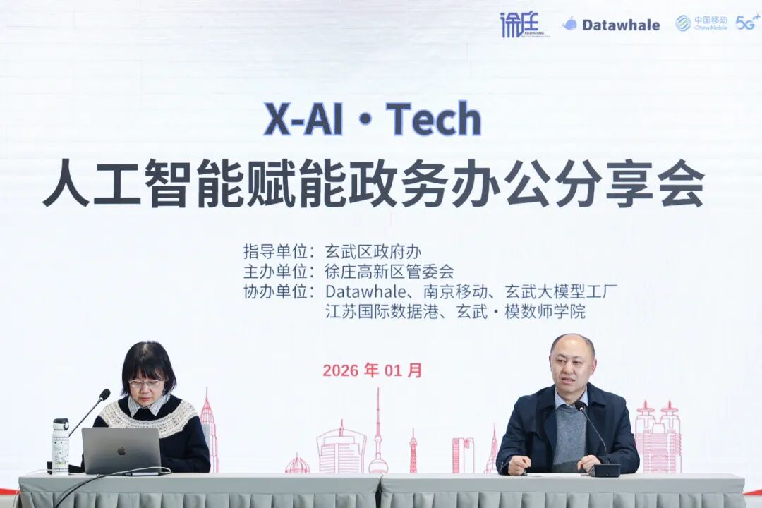 本次活动由徐庄高新区管委会牵头主办,玄武大模型工厂、江苏国际数据港、Datawhale、南京移动、玄武・模数师学院共同协办。