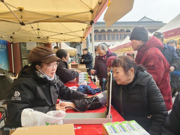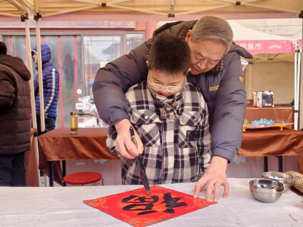 在“温情便民服务区”,志愿者为居民提供免费血压测量与口腔健康检查,耐心答疑解惑,将关怀送到身边。“新春文化体验区”墨香四溢,年味十足。书法老师凝神聚气、挥毫泼墨,在一张张红纸上笔走龙蛇,写下一幅幅寓意吉祥的春联和饱满圆润的“福”字。笔墨未干,祝福已至,居民们围在一旁,一边欣赏书法技艺,一边挑选心仪的联句,将新春的期盼与暖意带回家中。一旁的儿童活动区同样热闹,孩子们专注地制作新年针线画和手串,在动手体验中感受传统年俗的趣味。